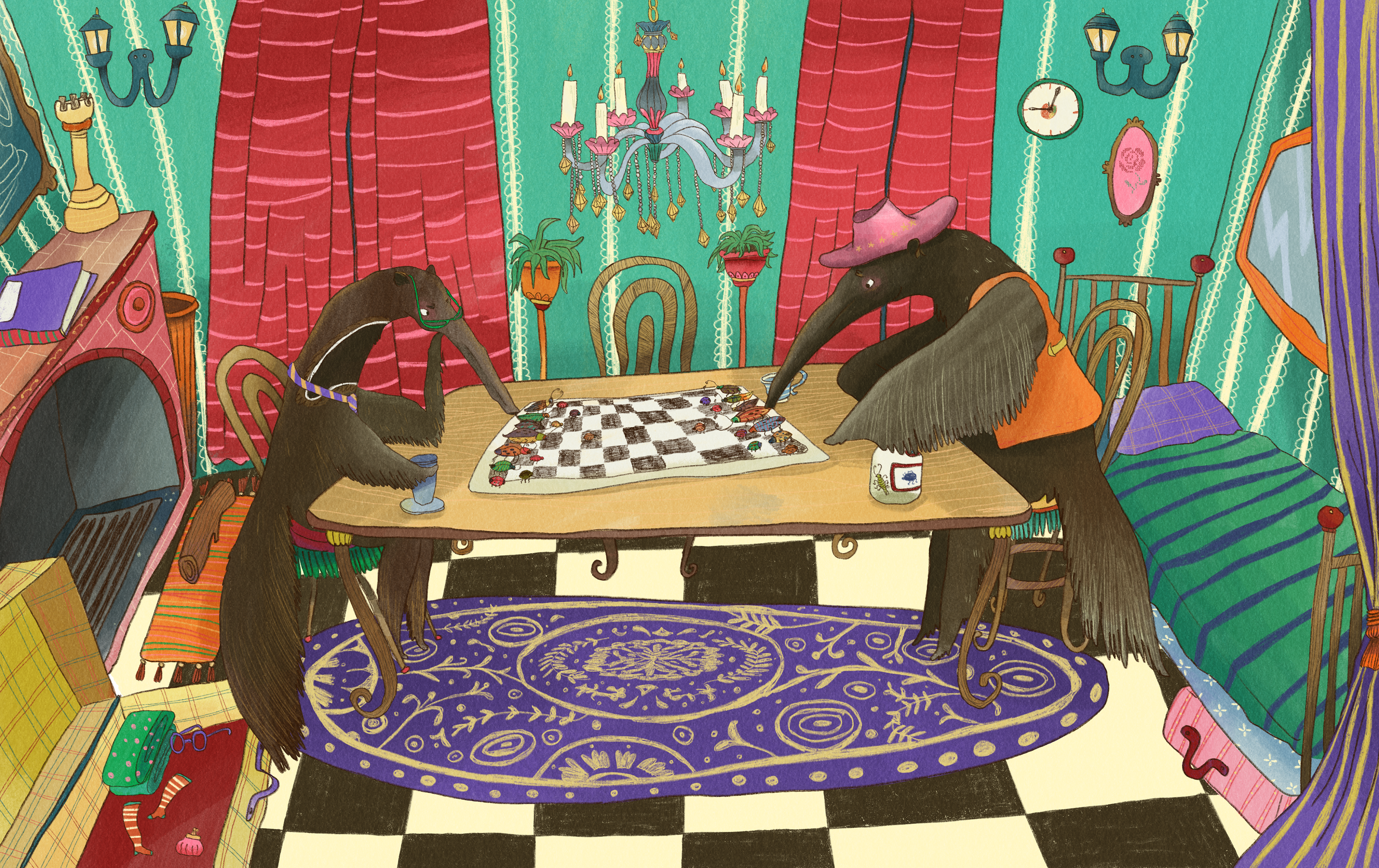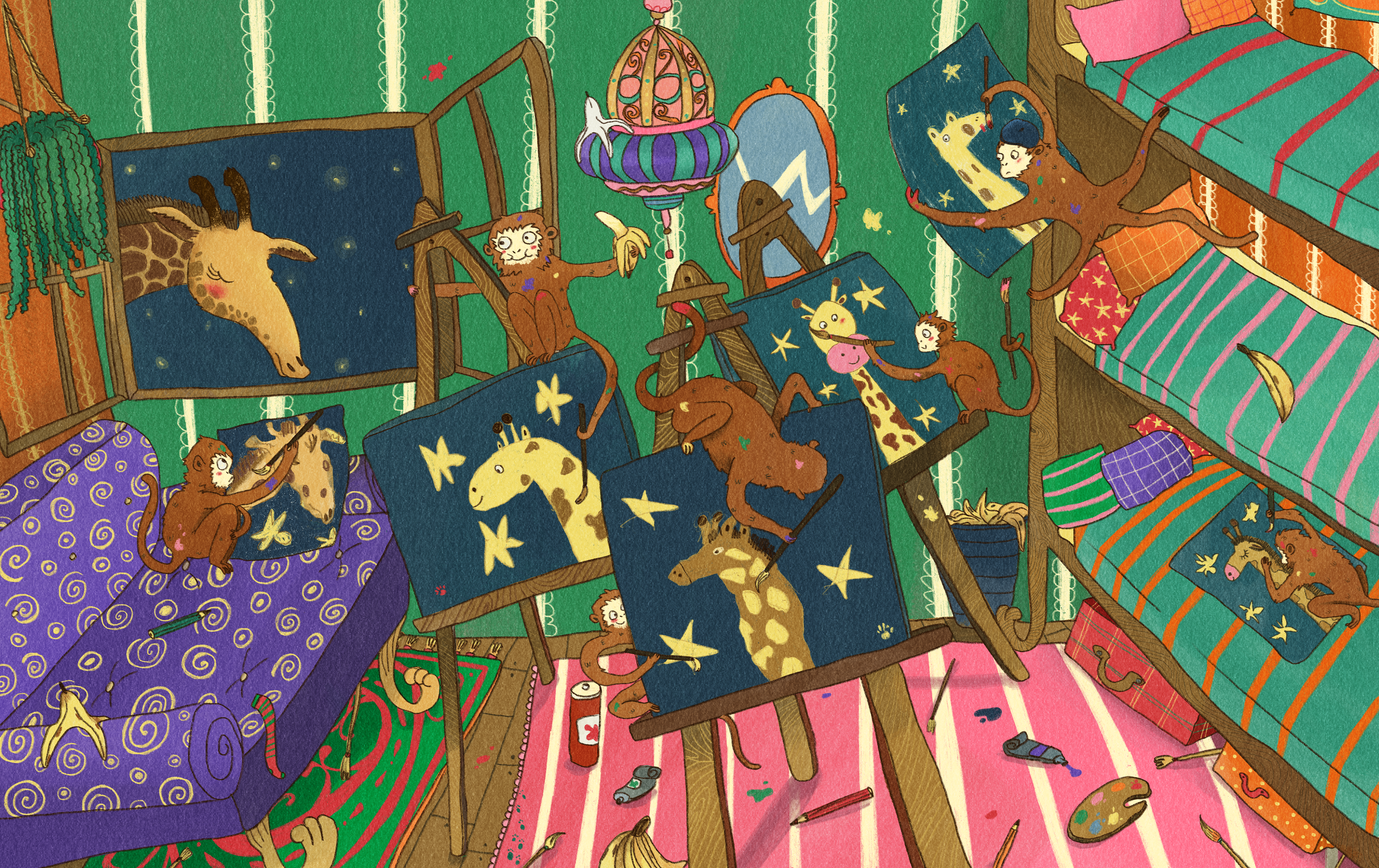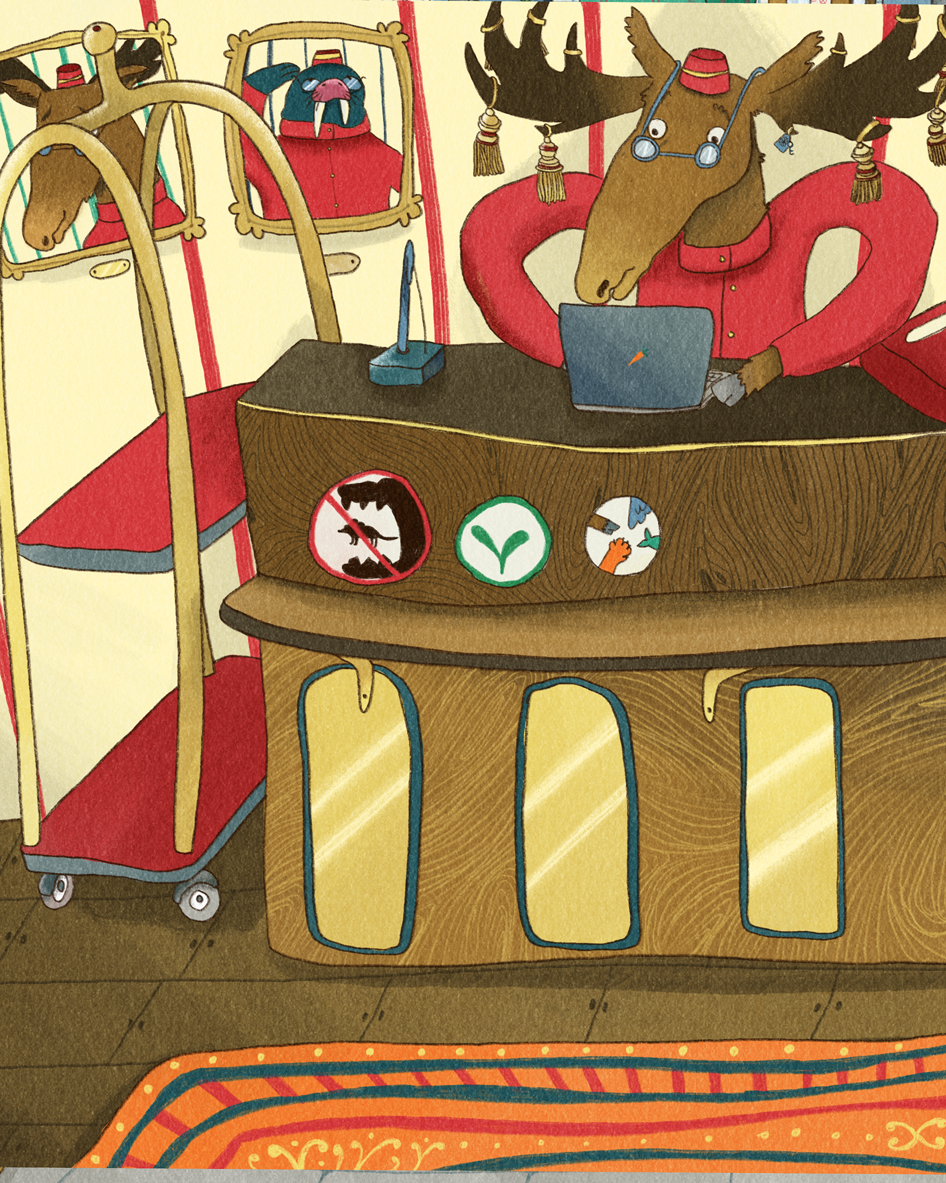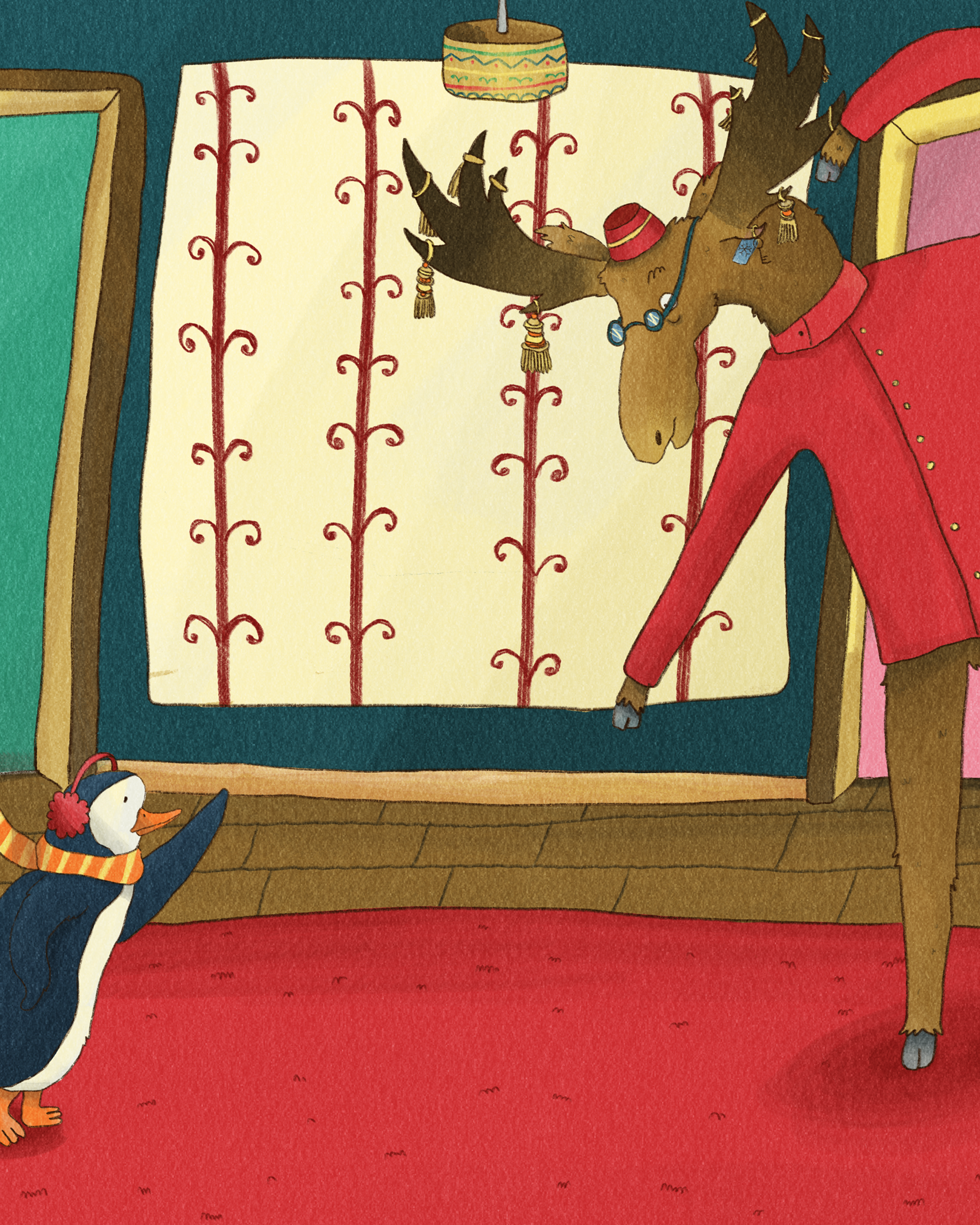 In "A room for a penguin", a little penguin is searching for a free room in a special hotel – a hotel that only animals stay in. But every room is already occupied by another animal, each engaged in their own surprising and humorous activities. From crocodiles singing karaoke to flamingos hosting pajama parties, and giraffes knitting scarves, the penguin embarks on a series of funny adventures while searching for the perfect spot.