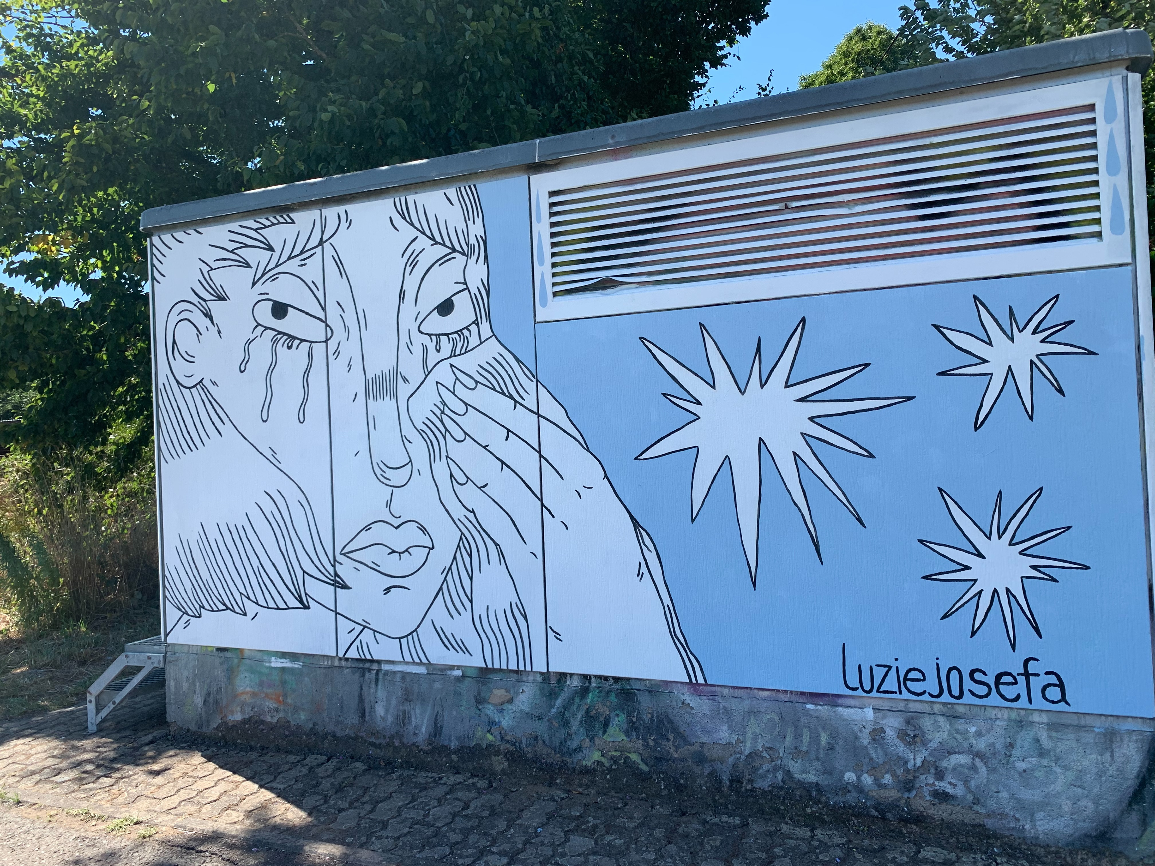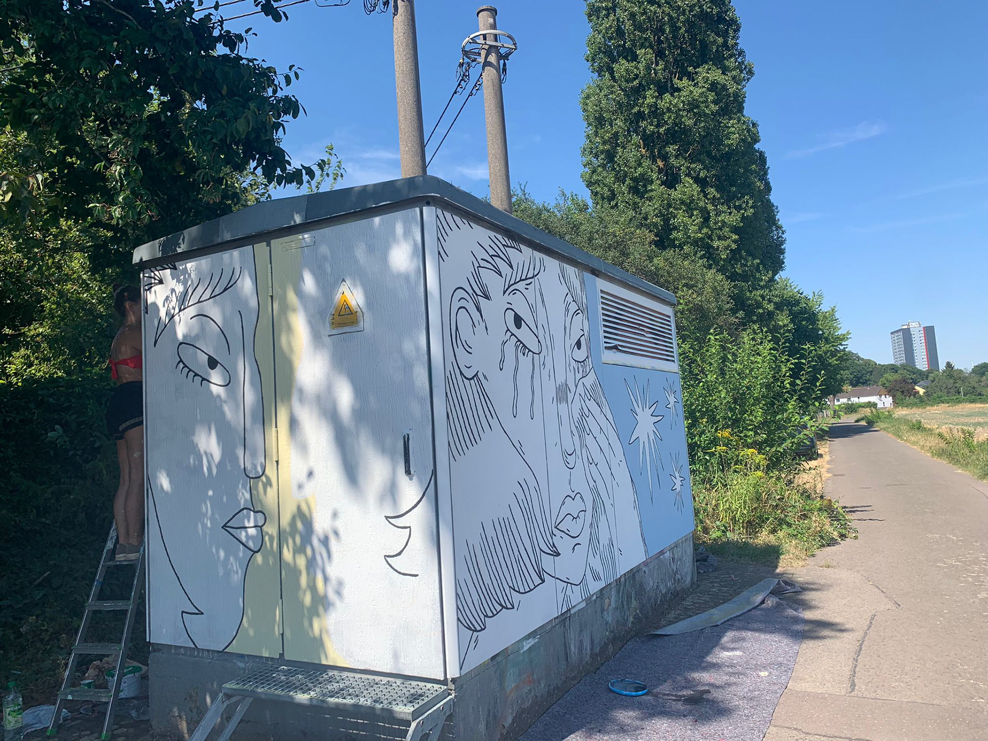 Stromhausgestaltung "Ciao Amore Mio", inspiriert von dem gleichnamigen Song der Musikerin Fuffifufzich. Standort: Saarlouis, Deutschland.